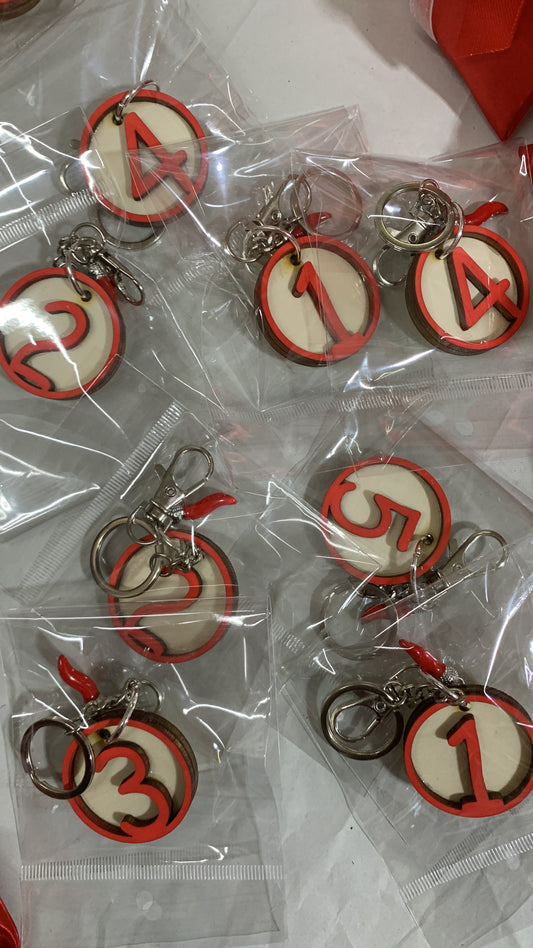 Portachiavi con nappina corno peperoncino su sacchetto laurea ricamato
