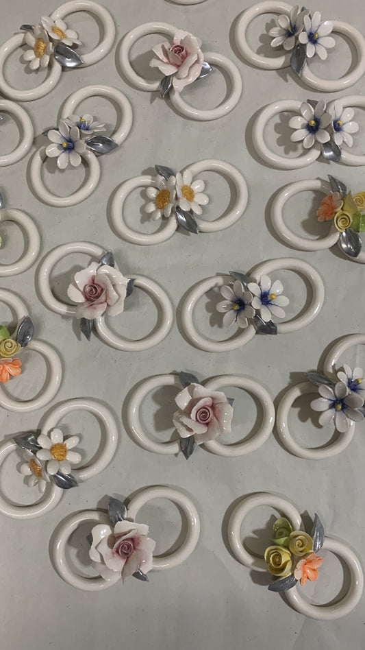 Sacchetto con rosa maggese in porcellana con foglioline