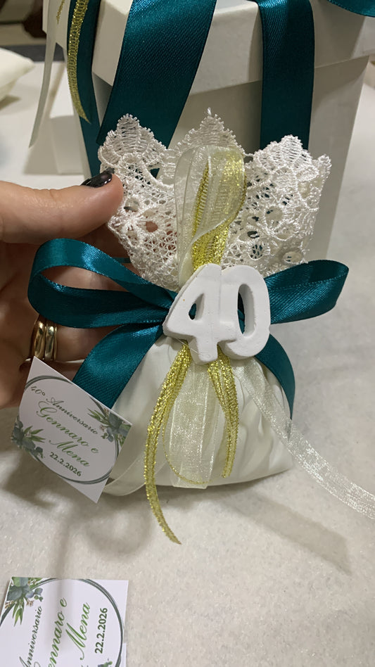 Sacchetto seta e macrame’ confezionato per anniversario