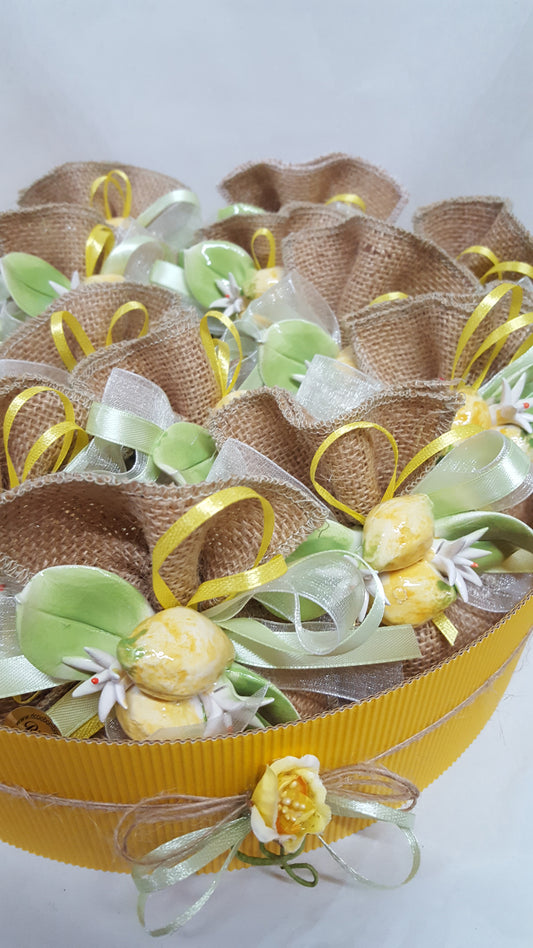 Sacchetto iuta con limoni in ceramica