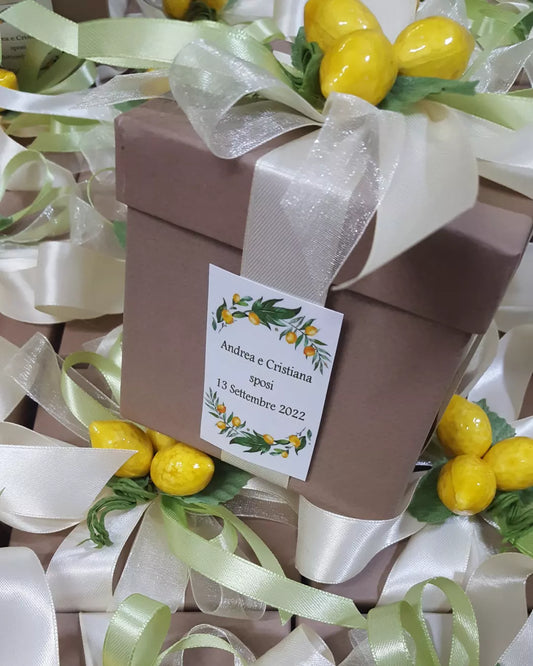 Sacchetto iuta con limoni in ceramica