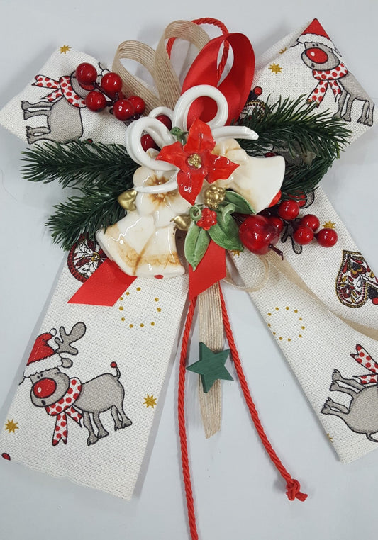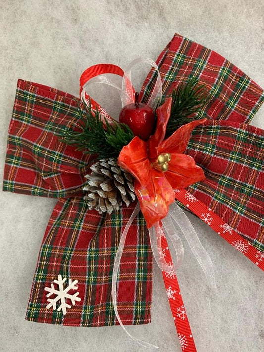 Fiocco 20cm scozzese con stella in ceramica rossa
