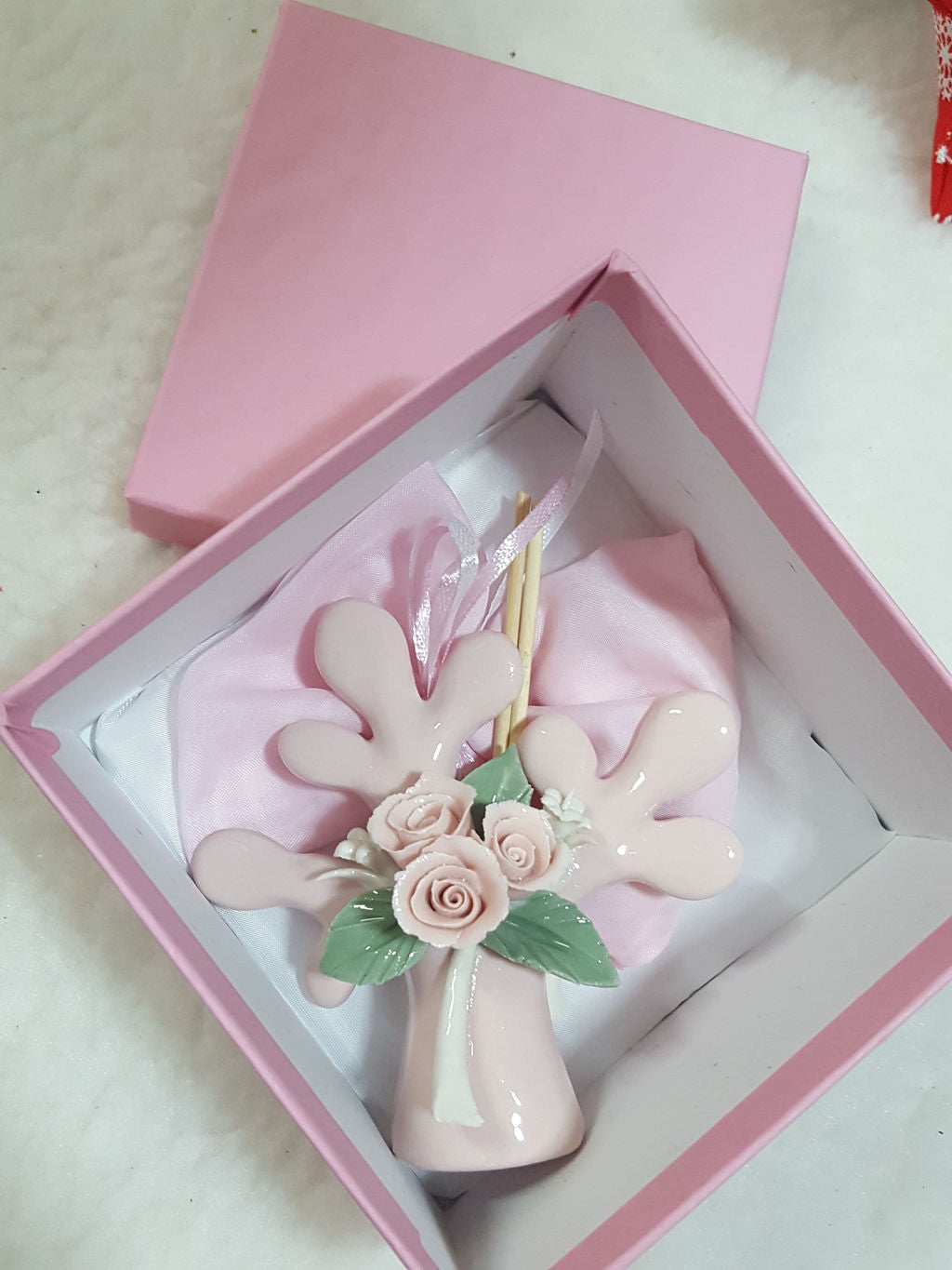 albero della vita (colore e fiori a scelta) con foro profumatore con decorazione di fiori frontale, in porcellana di Capodimonte.