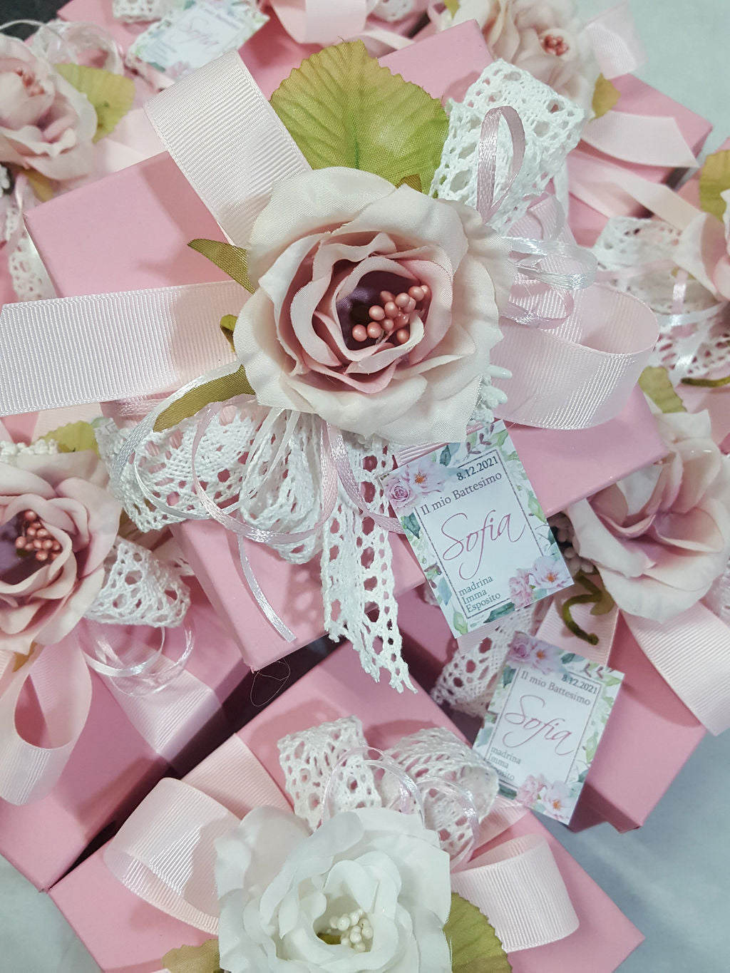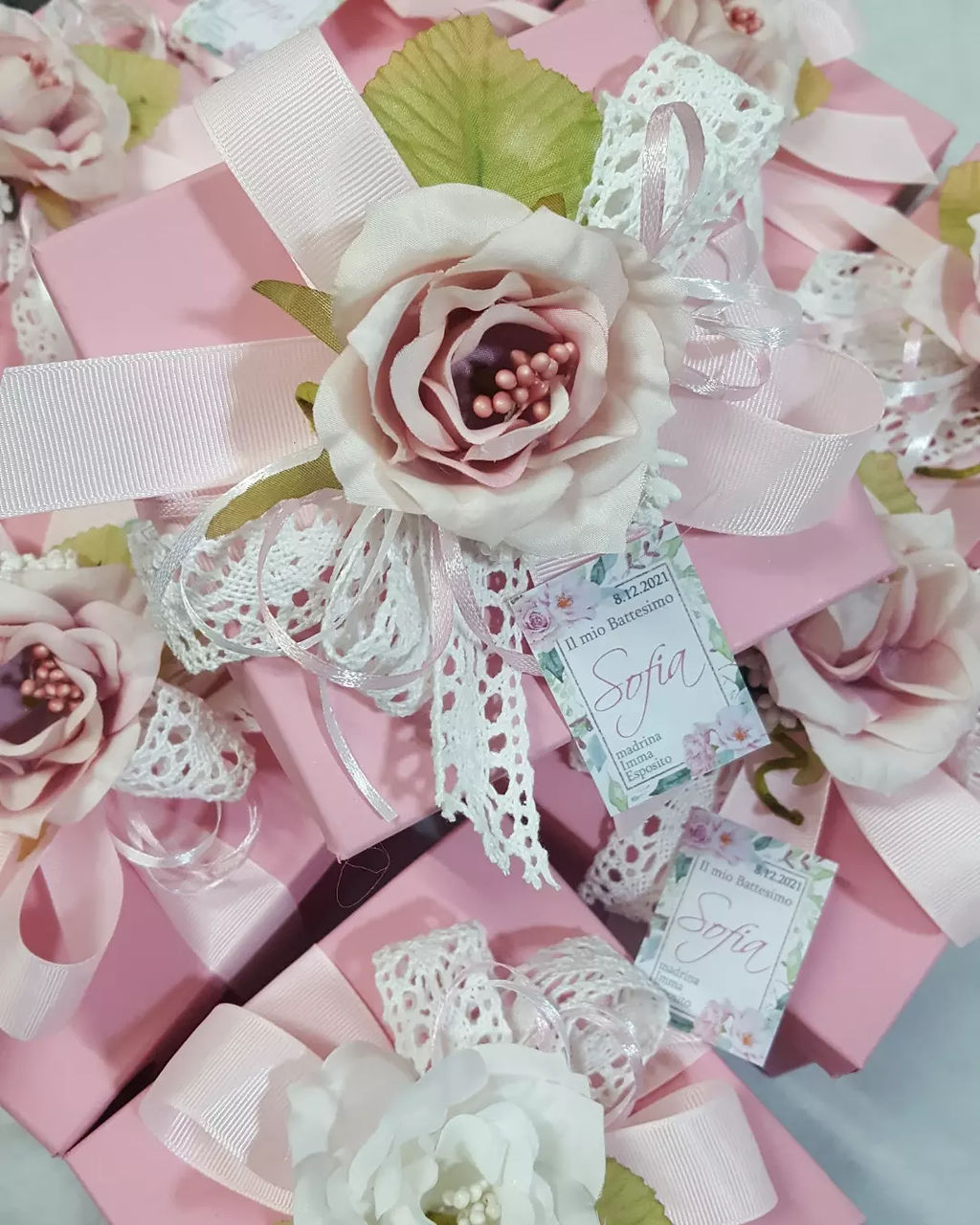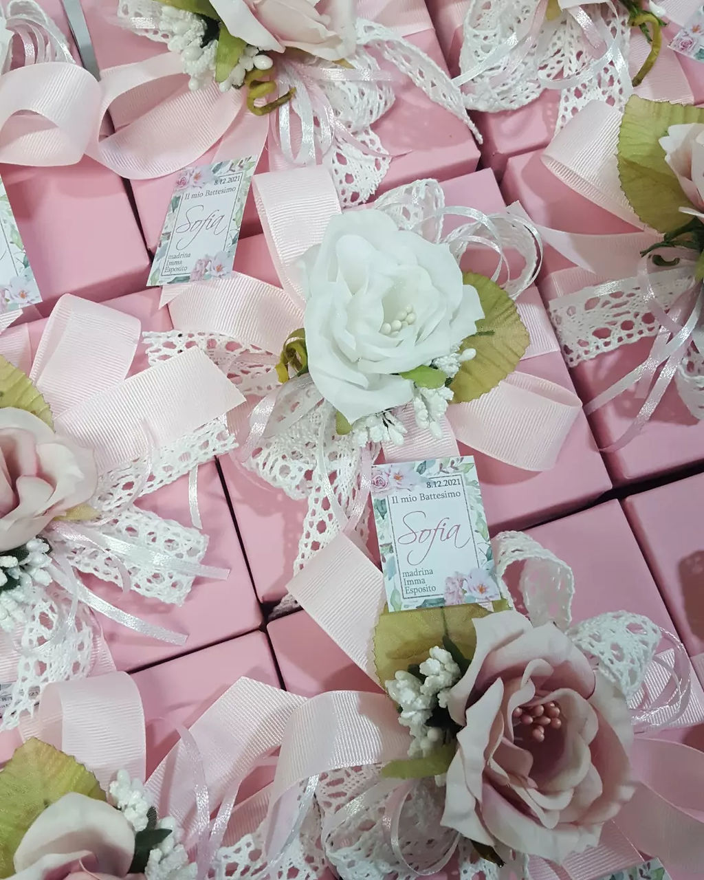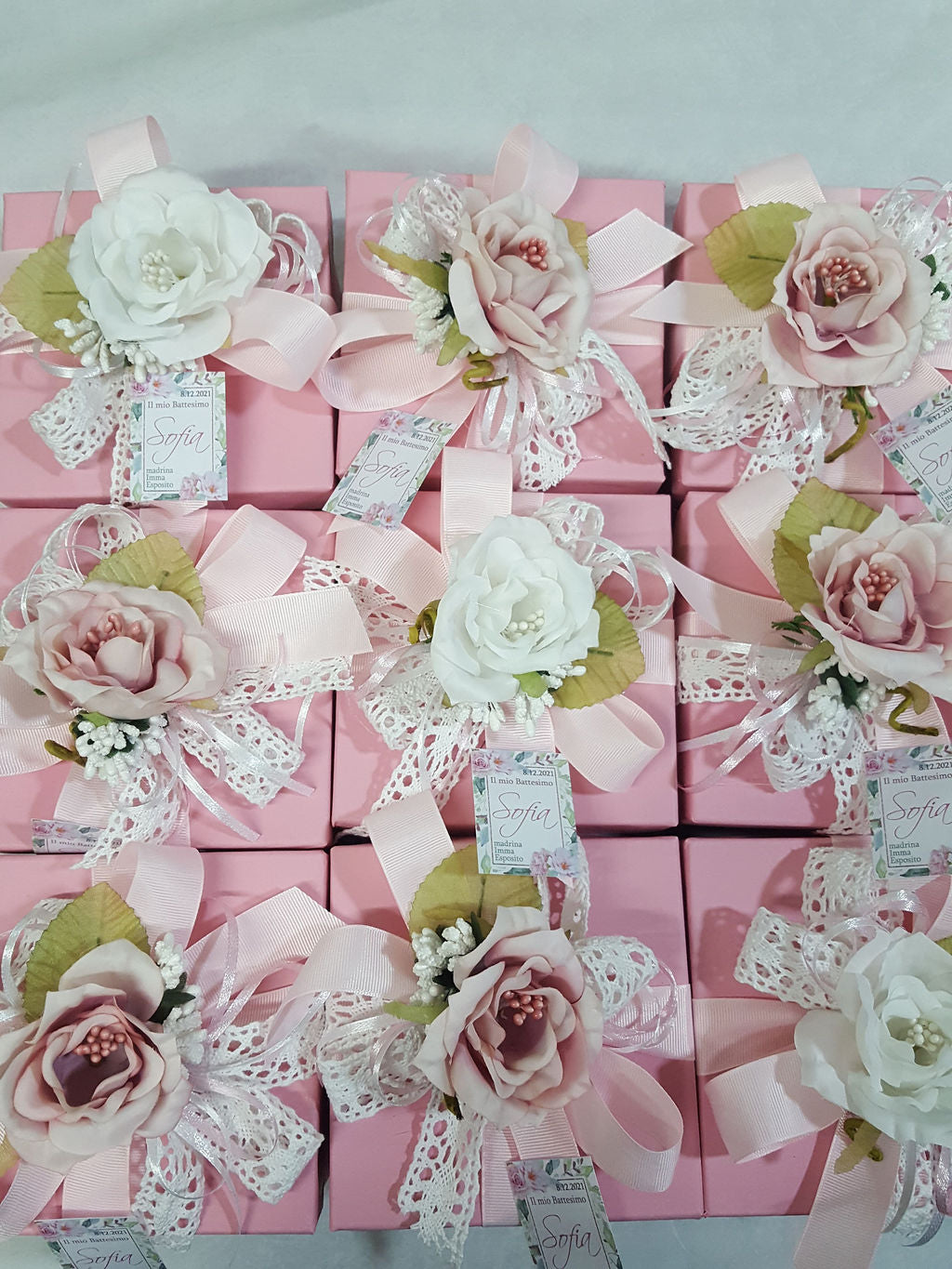 Misura 10x10cm completo di scatola e confetti e confezione e biglietto personalizzato