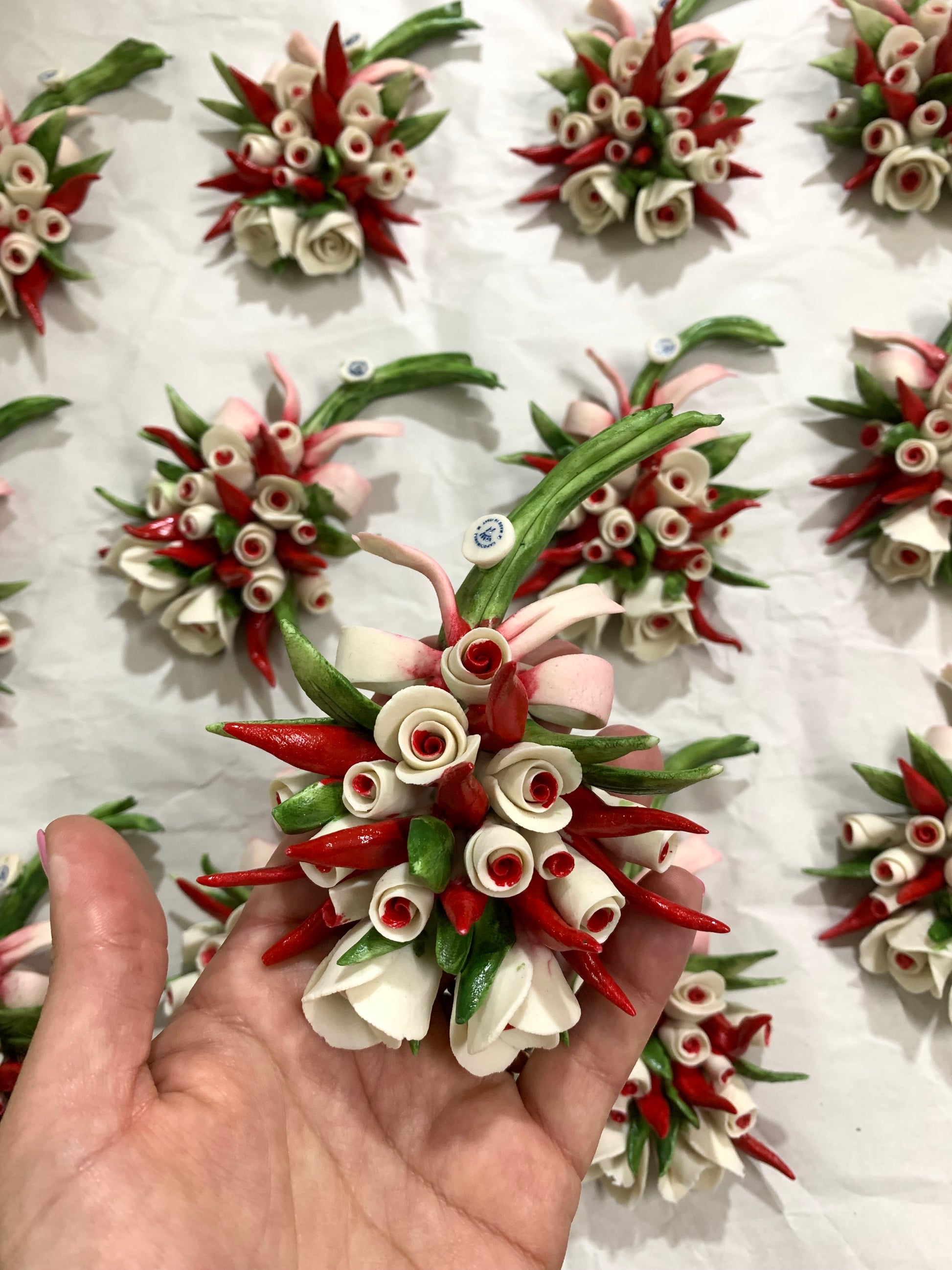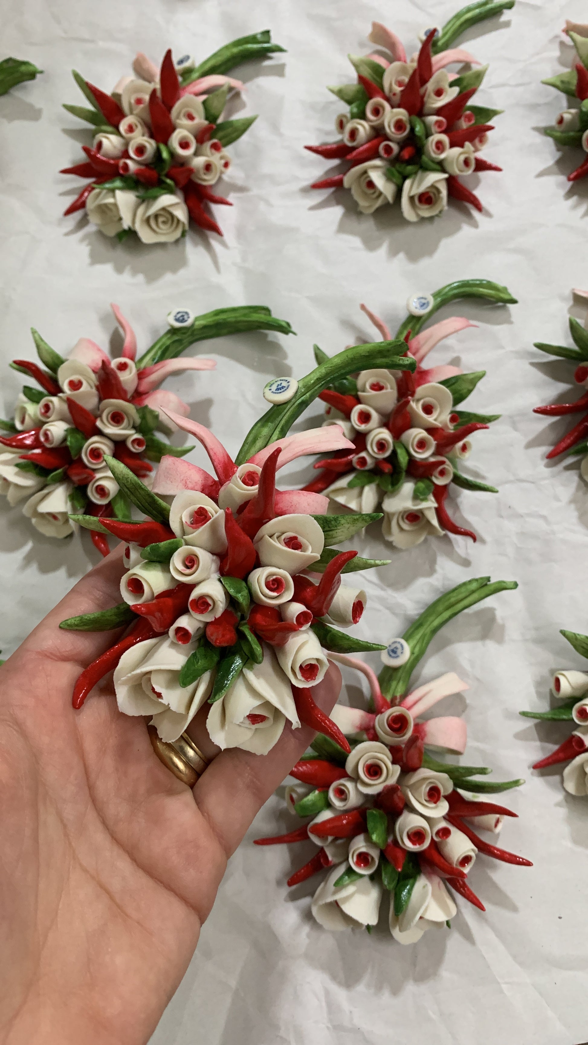 Cornucopia bouquet classico Capodimonte con rose e peperoncini