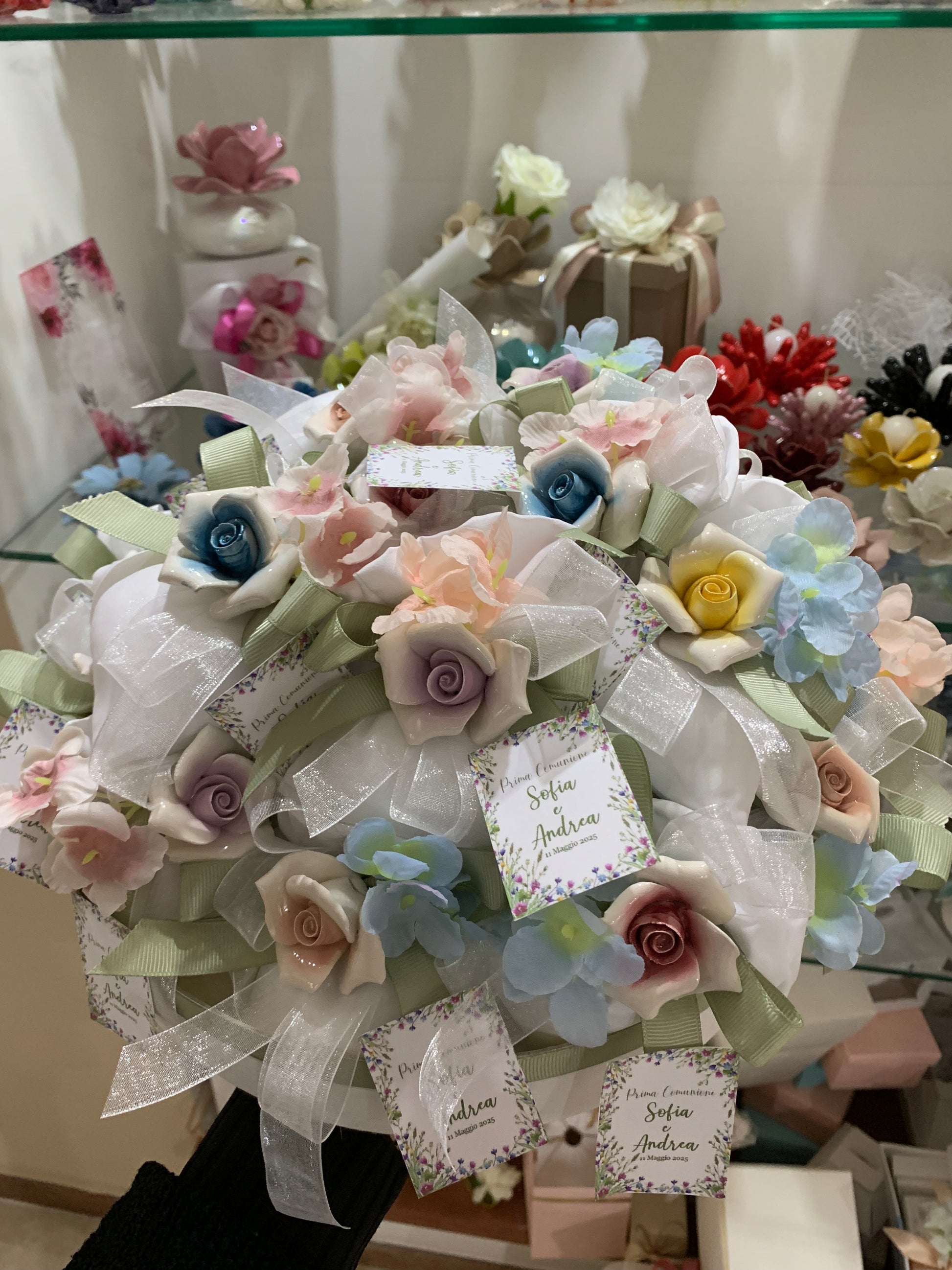 Fiori ceramica ricchi con fiori artificiali confezionati