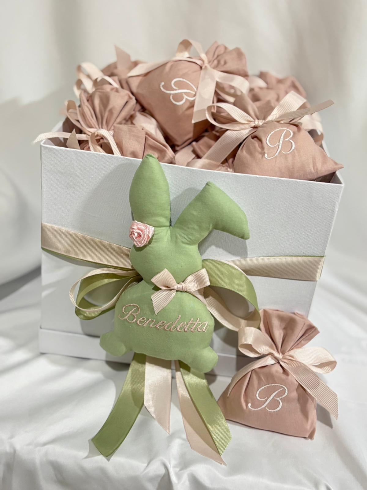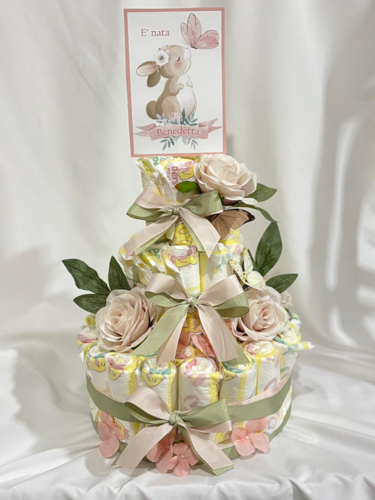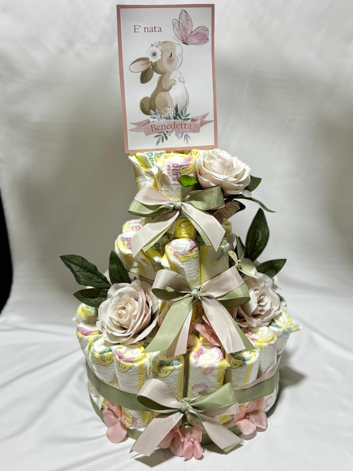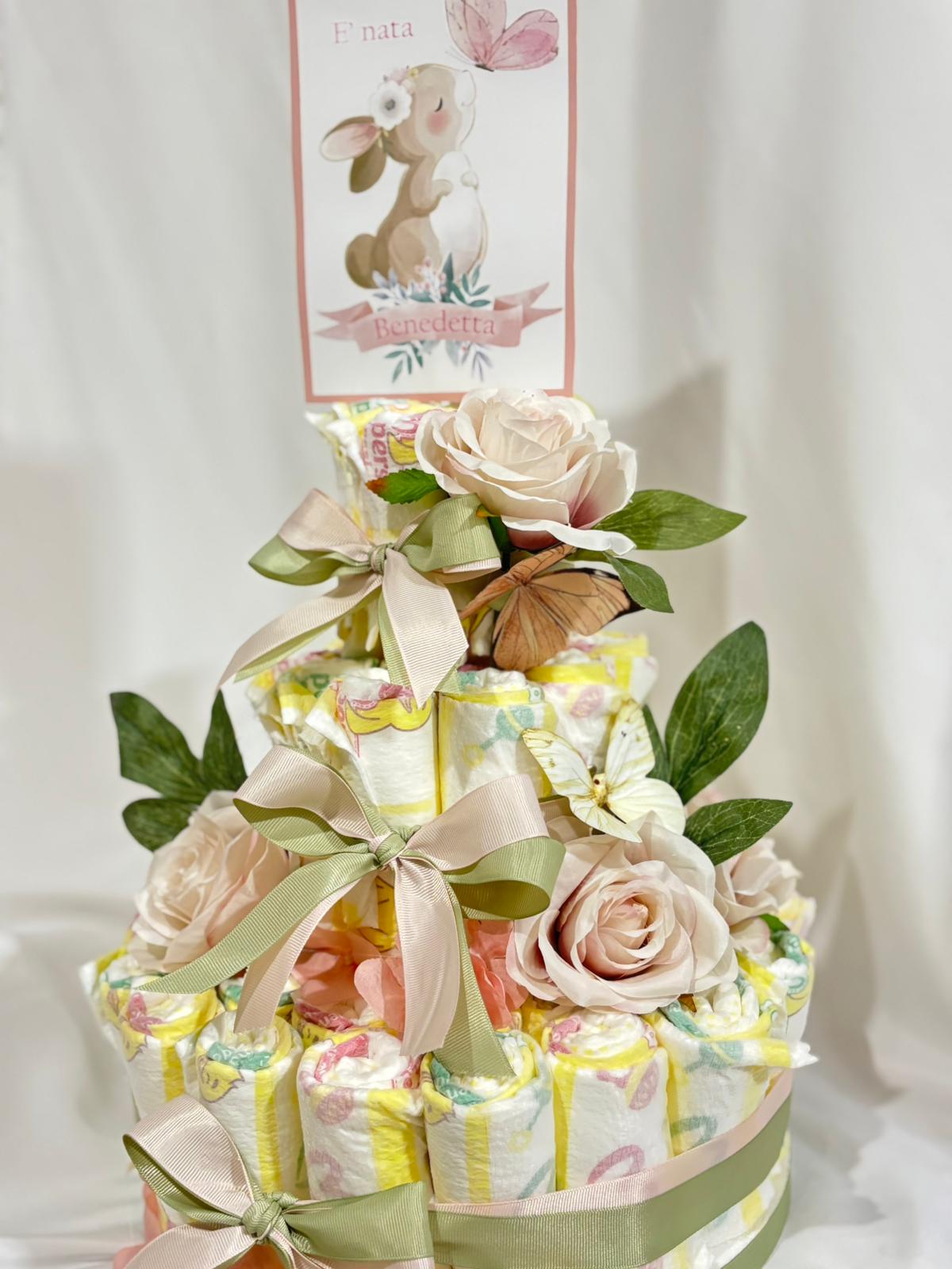 Nascita a tema coniglio: bomboniere, scatola cameretta, fiocco nascita, torta di pannolini