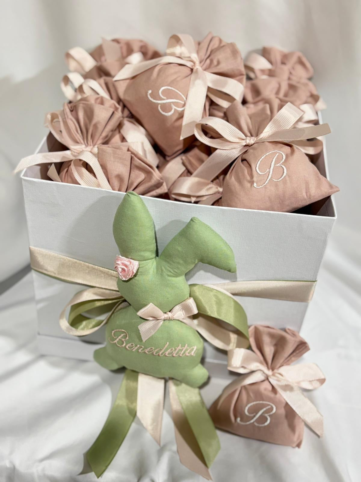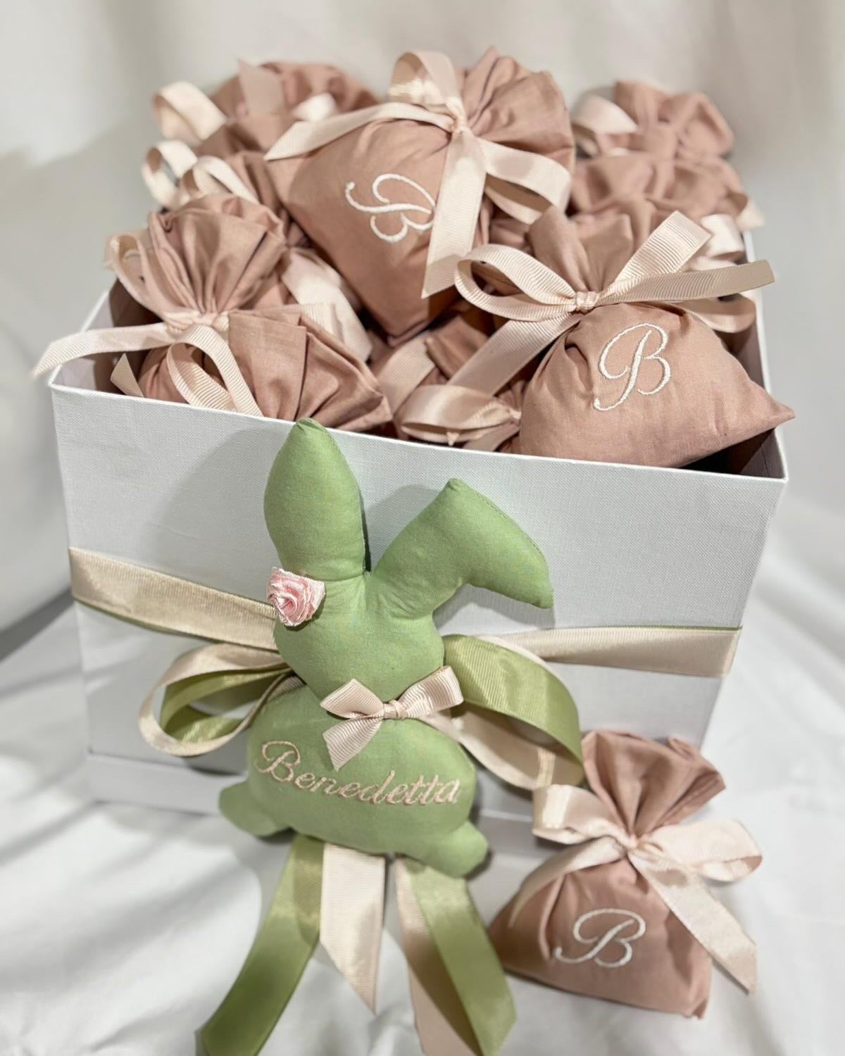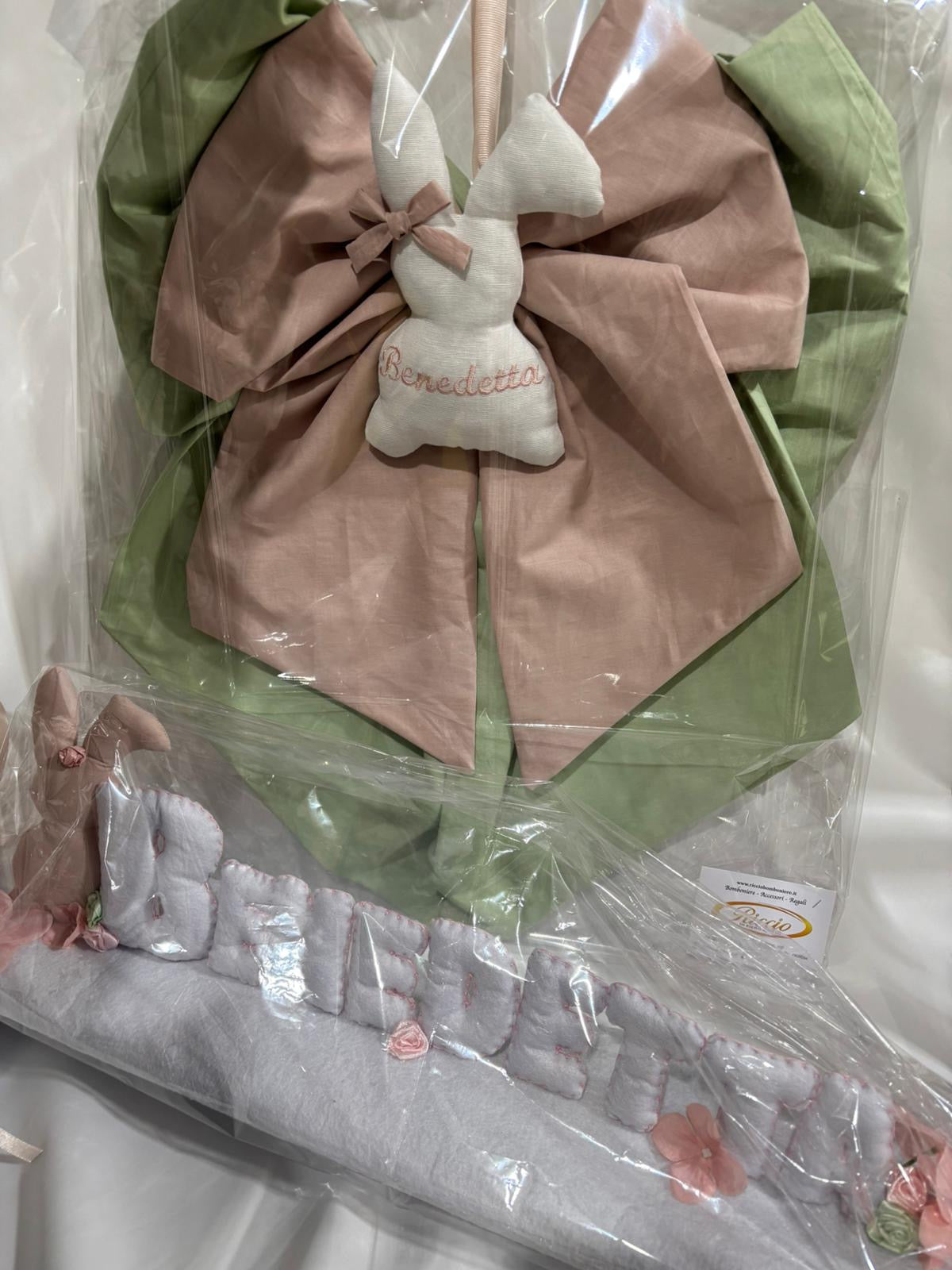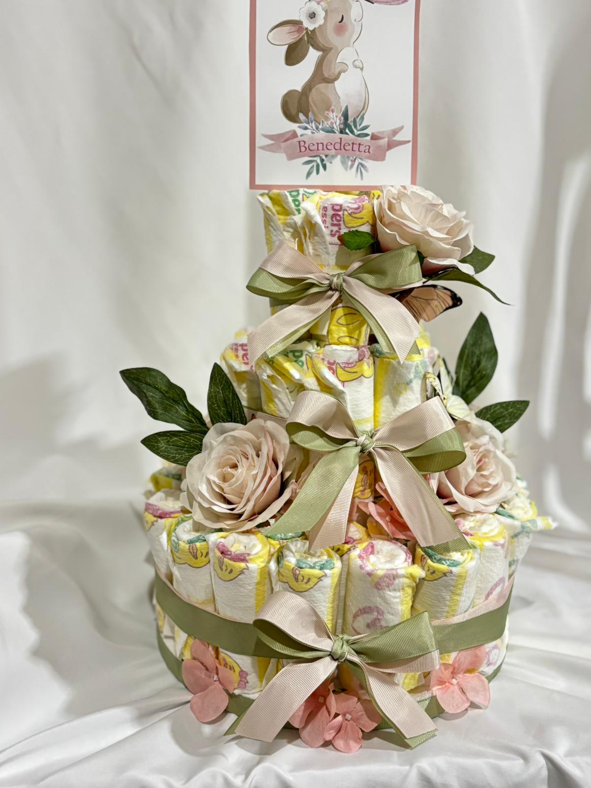 Nascita a tema coniglio: bomboniere, scatola cameretta, fiocco nascita, torta di pannolini