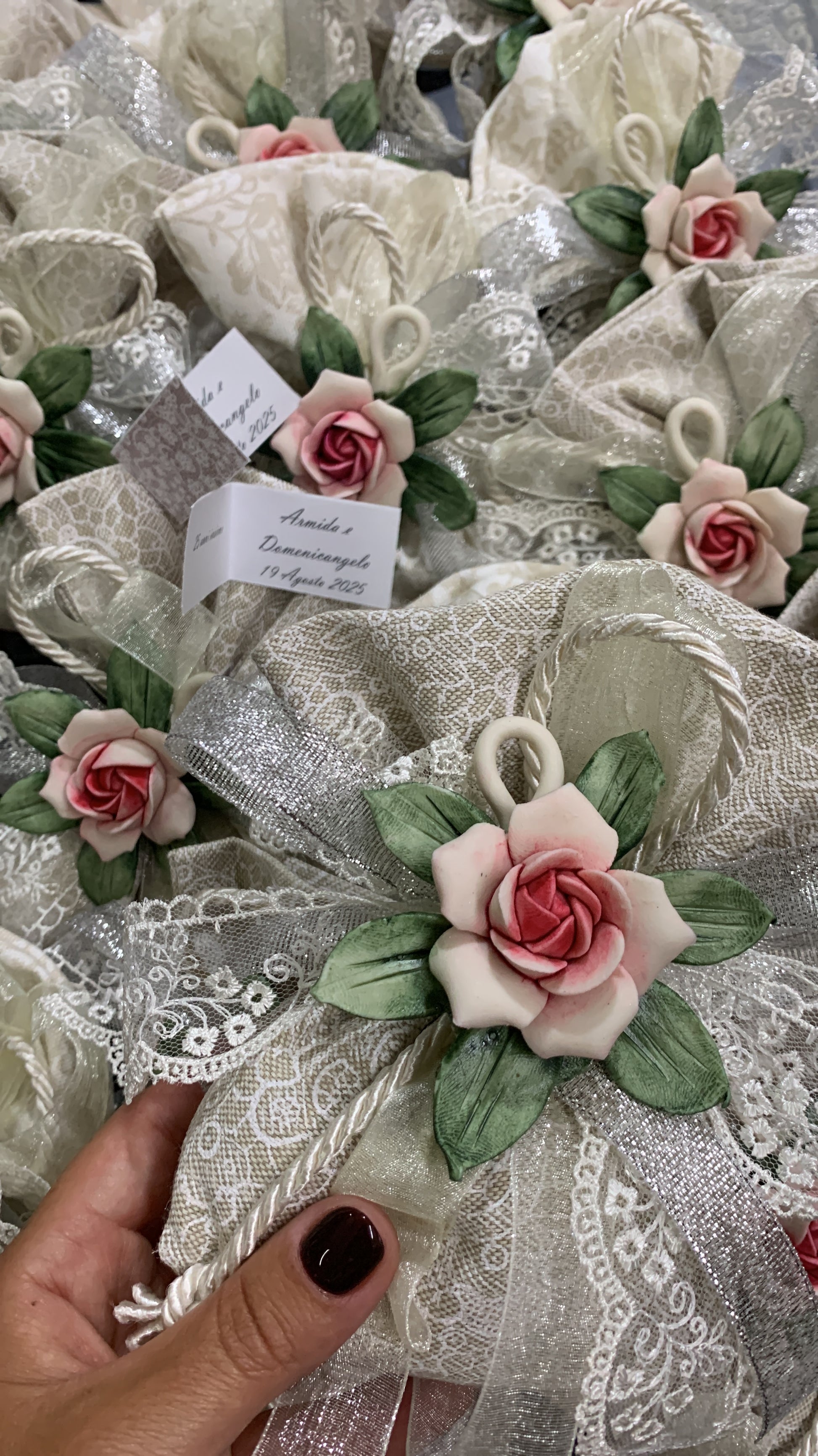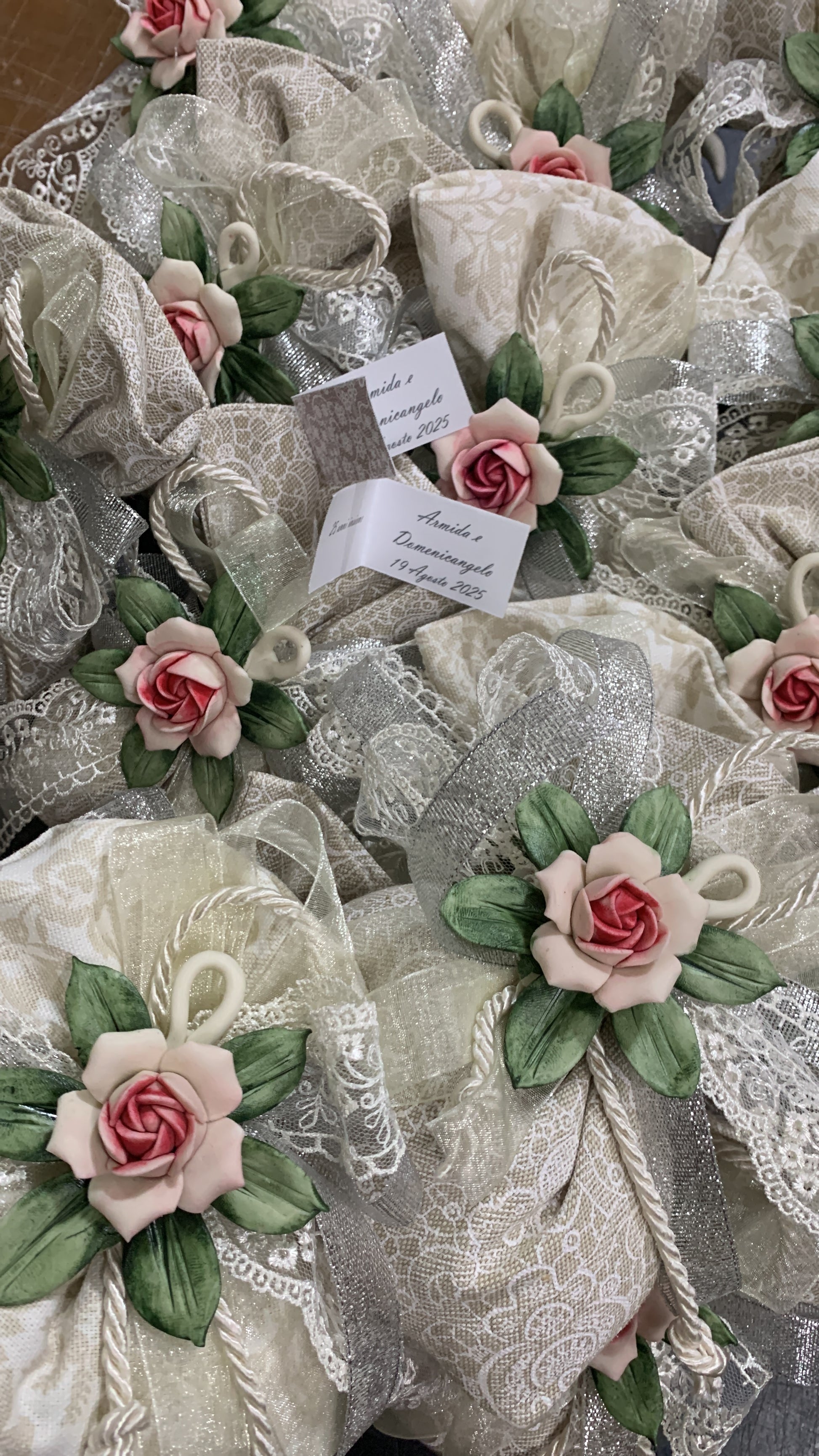 e gancetto superiore, confezionate su sacchetto (a scelta) come in foto