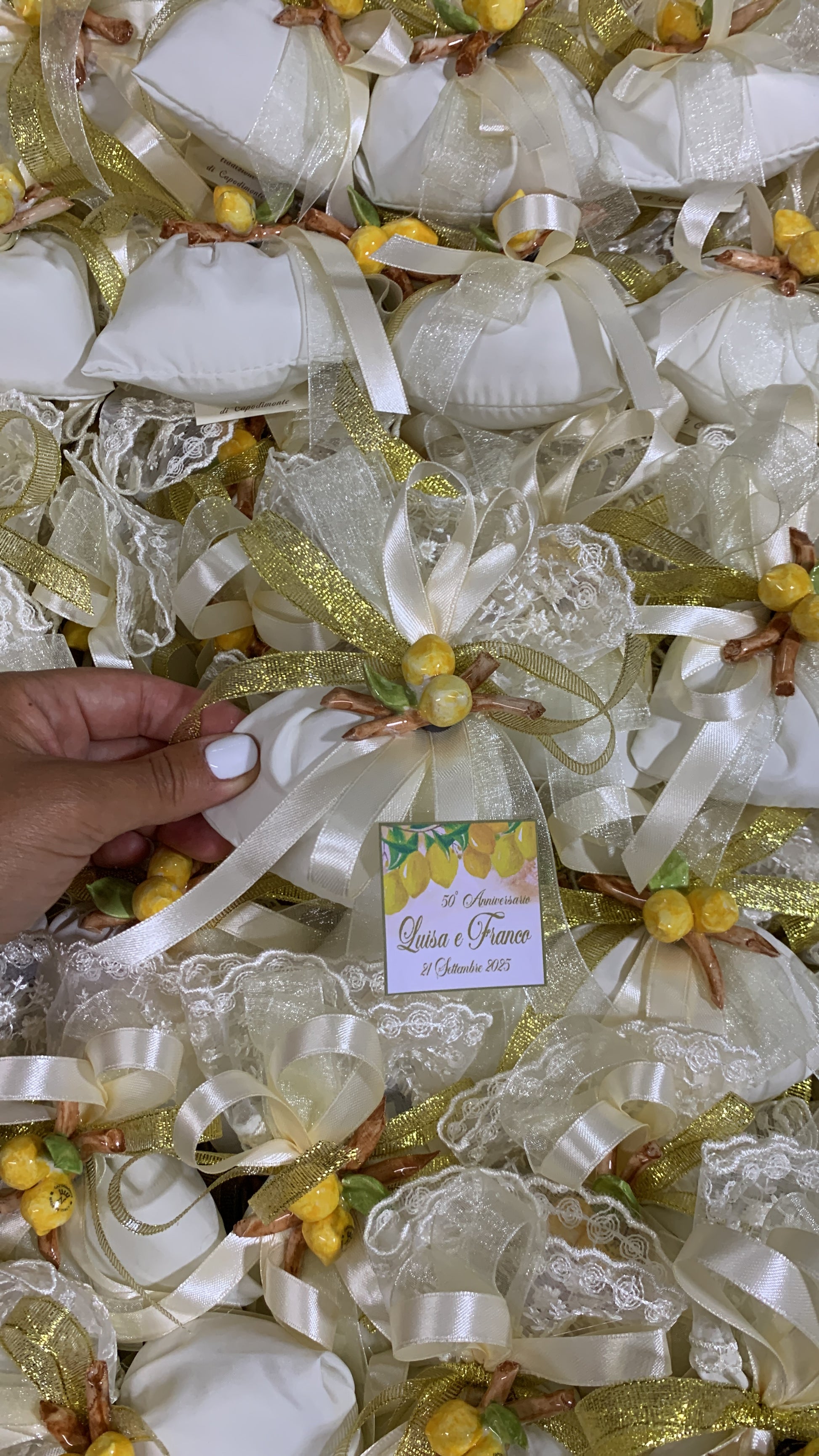Sacchetto con applicazione limoni e nastri oro